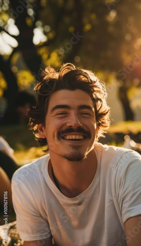 Casual Picnic in the Park - Laughter and Joy Amidst Greenery under Soft Sunlight - Perfect for Spring Designs