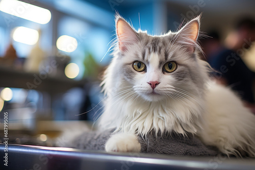 Cat grooming in pet beauty salon. Cat at the Groomer. Grooming