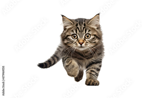 Cat running No shadows, highest details, sharpness throughout the image, highest resolution, lifelike, white background