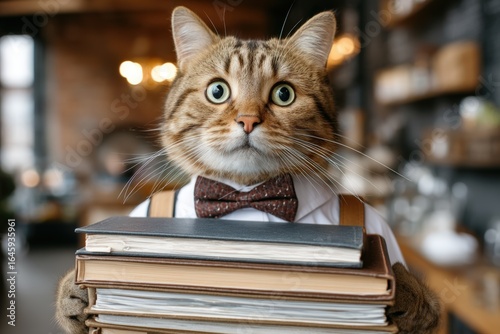 Cat Transformed into Human-Like Figure in Cozy Indoor Setting