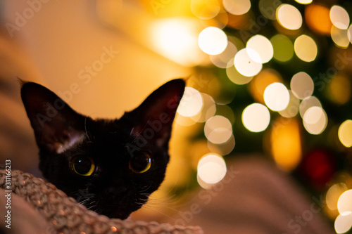 Cat with Christmas tree