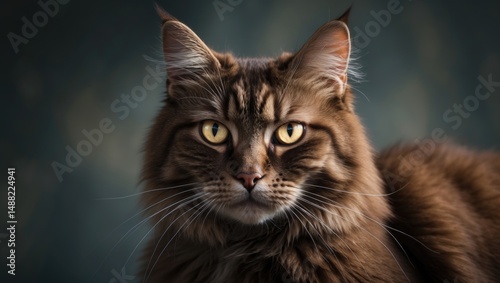 Cat with glowing eyes in brown color
