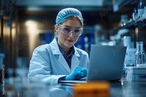 Caucasian Female Chemist Analyzing Liquid in Sterile Modern Laboratory Setting