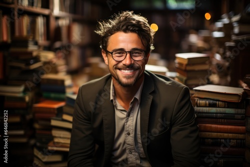 Caucasian Male Librarian Background Scene Strong Generative AI
