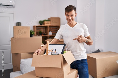 Caucasian man holding screwdriver at new home smiling happy pointing with hand and finger