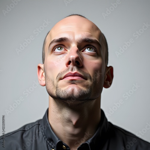 Caucasian young male looking upward reflectively in casual jacket