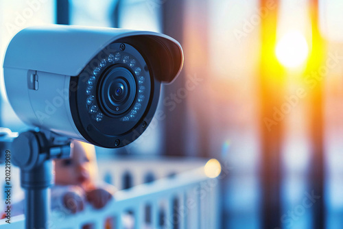 CCTV camera in nursery with soft sunlight, ensuring safety and monitoring