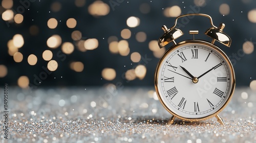Celebrating new year countdown indoor setting clock image sparkly background close-up view time concept