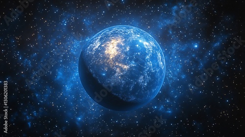 Celestial Blue Planet Glowing Brightly in Space. AI Generated