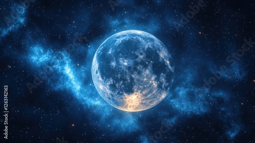 Celestial Body In A Starry Nebula Background