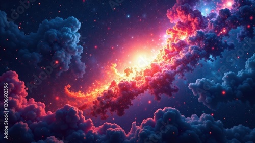 Celestial Canvas A Vivid Tapestry of Cosmic Clouds and Glowing Nebulae, Illuminated by Radiant Stellar Energy