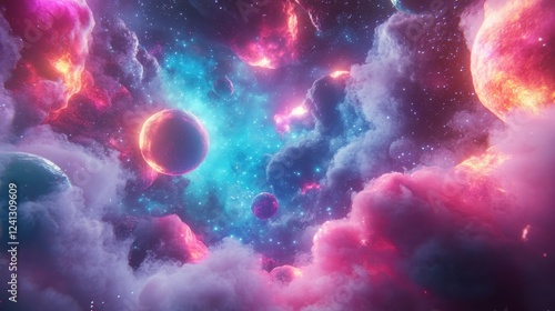 Celestial Cloudscape Planets Illuminated Nebulae Glowing Starscape