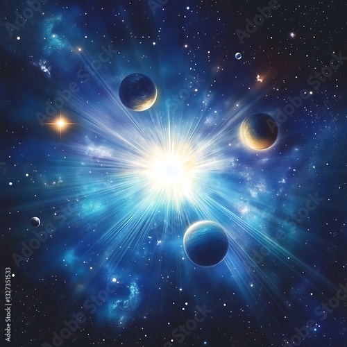 Celestial Galaxy Background with Sparkling Stars and Planets, cosmic, universe