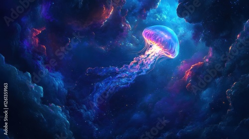 Celestial Jellyfish, A Bioluminescent Dreamscape Amidst Cosmic Clouds