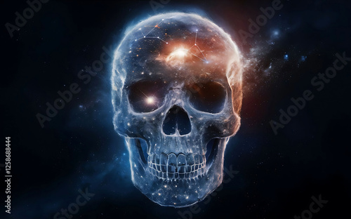 Celestial Skull of Stardust with Constellations and Galaxies in Space.