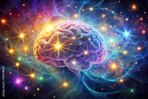 Celestial Synapse: Starglow dots, cosmic brain, ethereal, iridescent, astrophysics