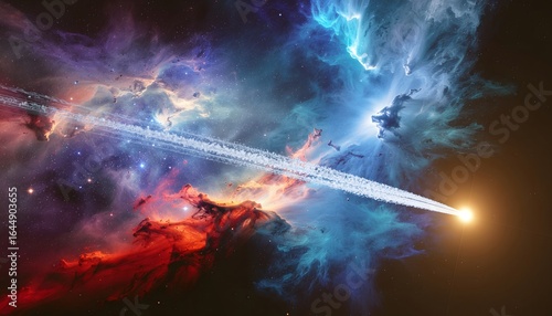 Celestial Trail: Comet's Passage Through Vibrant Nebulae