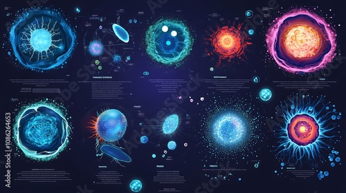 Cell division processes mitosis stages depicted in a detailed biology educational chart explaining the phases of cell division and the mitotic spindle