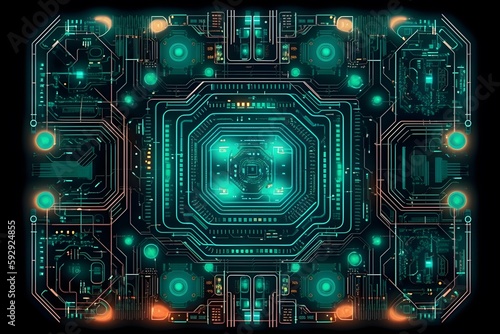 Central Computer Processors CPU concept. Motherboard Circuit board digital chip. Tech science background. Quantum processor. Generative ai