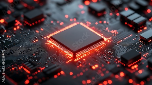 Central Processor Unit Illuminated Red On Circuit Board