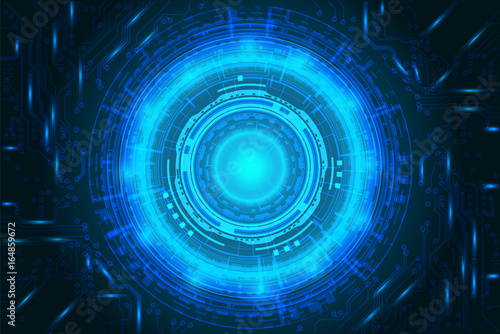 Centralization of Blue tech circular Circuit sci technology background, vector illustration