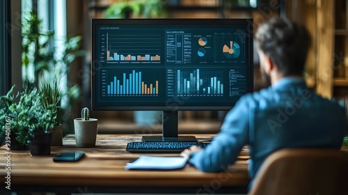 CEO presenting business data, projector screen showing revenue strategy, product sales, investors analyzing information