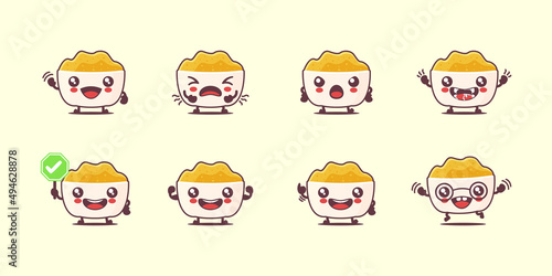 cereal cartoon. breakfast vector illustration. with different faces and expressions