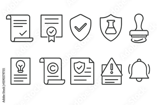 Certificate, document outline icon set. compliance, check, approval icons collection
