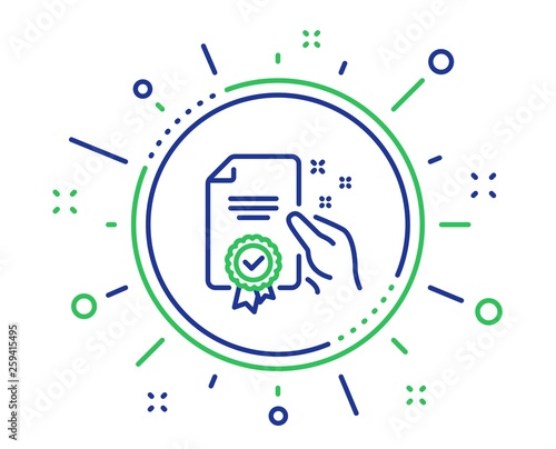 Certificate line icon. High quality or Guarantee sign. Verified document symbol. Quality design elements. Technology certificate button. Editable stroke. Vector