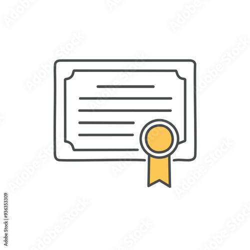 Certified document with ribbon seal. A simple line drawing of a certificate with a ribbon seal. Perfect for use in presentations or to represent achievement.