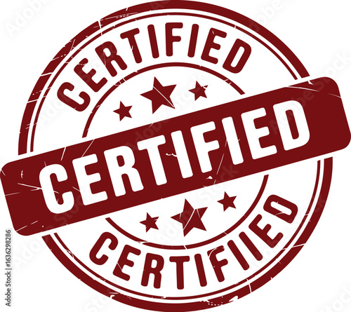 Certified Stamp Vector – Red Circular Badge with Stars and Distressed Texture