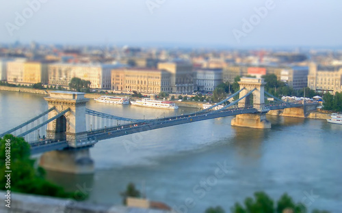 Chain Bridge over the Danube River, Budapest. Tilt-shift effect applied