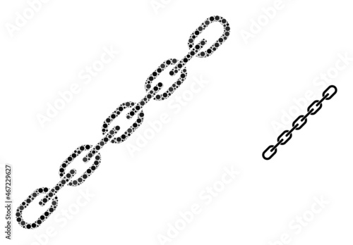 Chain vector mosaic of circle dots in variable sizes and color shades. Circle dots are organized into chain vector mosaic. Abstract vector design concept.