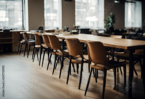 chairs empty lined table space coworking light job interior indoor illustration furniture flat elegance desktop desk design decoration decor co-worker creative workspace corporate workplace copy