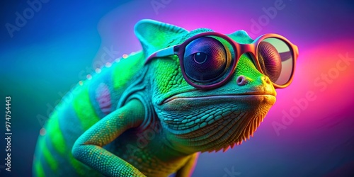 Chameleon Cool Dude in Neon Sunglasses, 3D Render, Digital Art, Chameleon, Reptile, Sunglasses