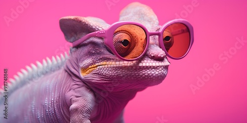 chameleon wearing sunglasses on a solid color background, Cool chameleon wearing sunglasses