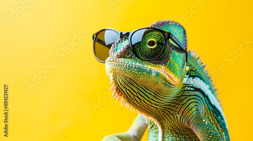 Chameleon Wearing Sunglasses on Solid Background - Generative AI Concept