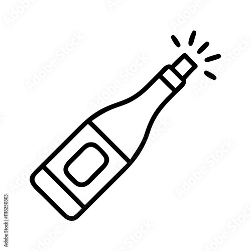 champagne bottle icon, new year illustration, new year icon - simple black line art of champagne bottle, symbolizing new year celebrations new year vector