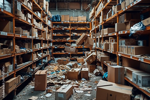 Chaos in Warehouse: Boxes Falling, Messy Inventory