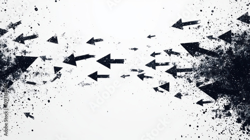 Chaotic arrows in different orientations create abstract design with dynamic movement and energy. contrasting black arrows against light background evoke sense of direction and chaos