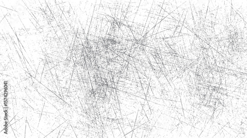 Chaotic grunge texture with clustered scratch lines and distressed rough noise. Abstract overlay design on white background. Vintage sharp pattern surface art.