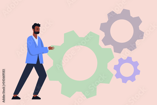 Character is pushing a big gear.