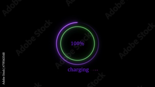 Charging icon magenta color circle loading bar illustration. Black background glowing neon light circle green 4k illustration.