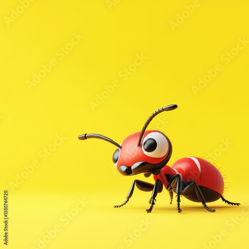 Charming 3d illustration of a cute red ant on a tropical background with detailed features and vivid coloration