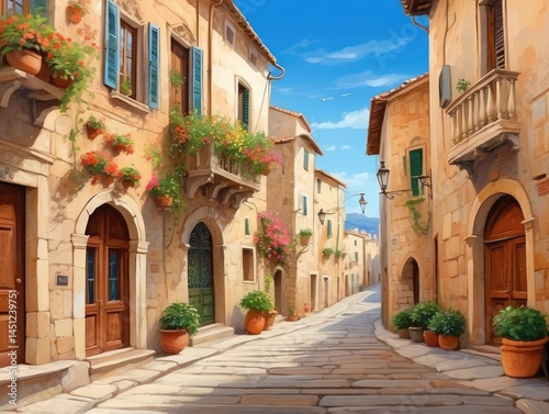 "Charming Alleyway Adorned with Flowers in a Historic Italian Village"