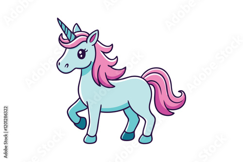 Charming and colorful unicorn illustration with a flowing mane and golden horn, ideal for adding a touch of magic and fantasy to your designs