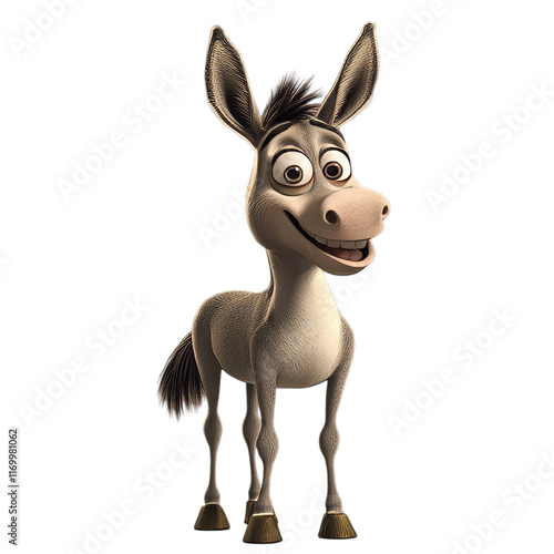 Charming Cartoon Donkey with Expressive Features and Playful Smile in Whimsical Animated Illustration