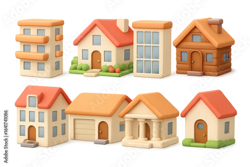 Charming collection of 3d cartoon homes with varied architectural styles