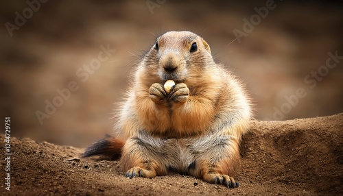 Charming Prairie Dog Savoring a Peanut, Striking a Playful Pose Amidst the Grassy Plains, Capturing a Moment of Cute and Whimsical Interaction in the American West.