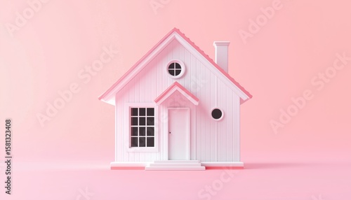 Charming Small House On A Soft Colored Background: Real Estate Abstract Rendering.